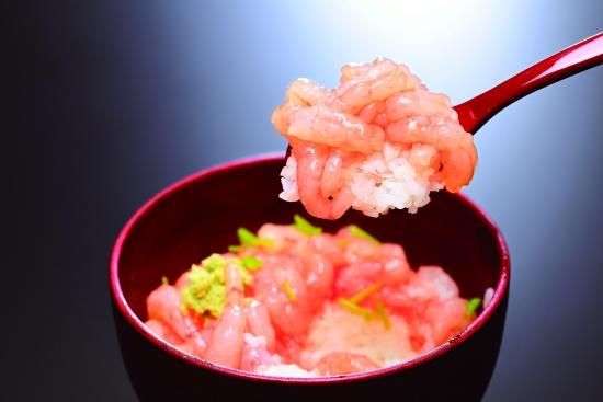 料理長特製の海老醤油をからめて贅沢な”甘海老てんこ盛り”丼ぶり!