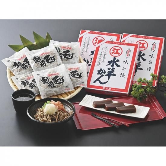 江川水ようかん(中) 520g×3枚/越前そば(生) 100g×6食 つゆ付 【アレルギー】小麦/そば 【賞味期限】6日